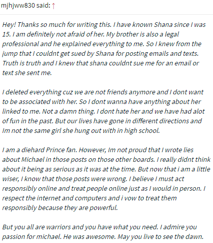 Shana’s former friend then posted an explanation as to why she decided to post the email exchange between her and Shana in the same forum where she posted the emails that exposed Shana:
