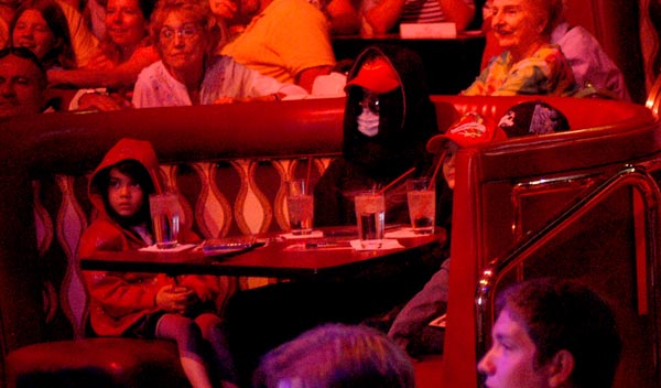 Below is a picture of Michael at the David Copperfield show in Las Vegas on New Years Eve 2007. As you can see, Michael is wearing sunglasses, a hat, a hoodie over the hat and a mask. You cannot see Michael’s eyes nor his mouth so there was no way anyone could have seen him staring and smiling at Shana the entire time as the story is told.